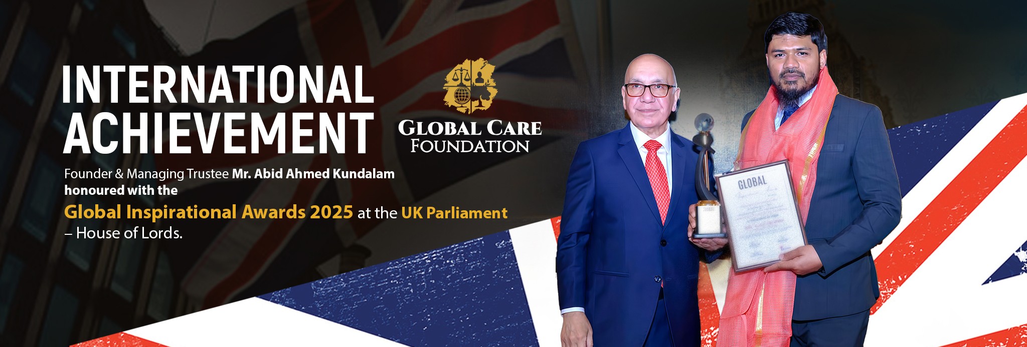 Global Care Foundation, is an NGO registered under the Bombay Public Trust Act 1950, bearing Reg. No. E-33688.